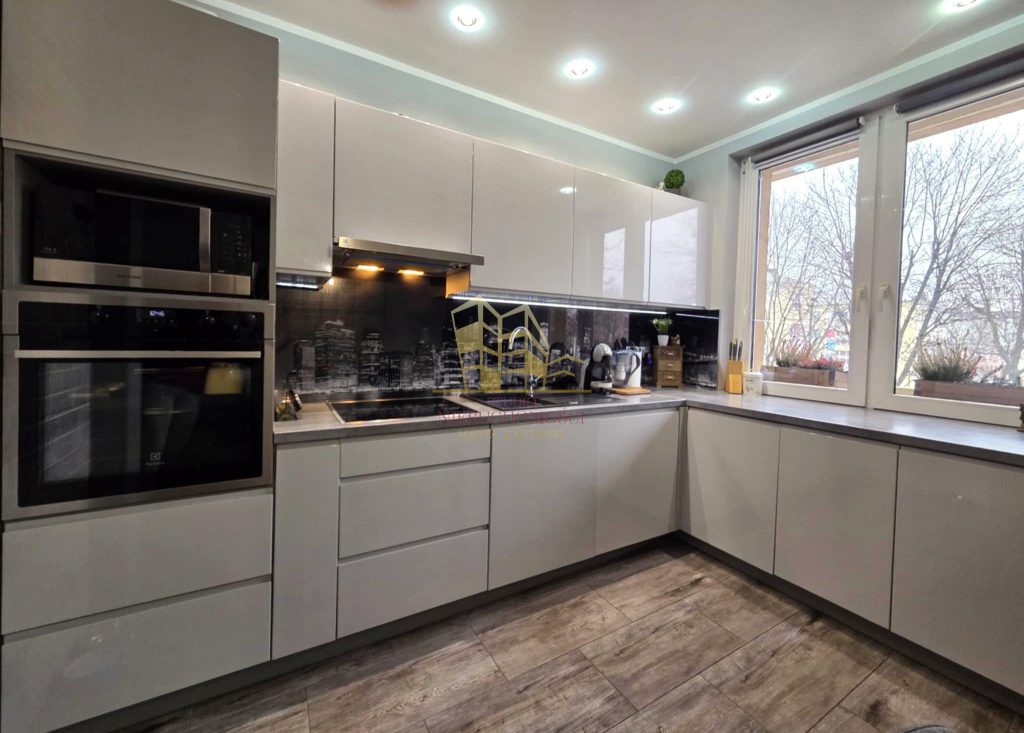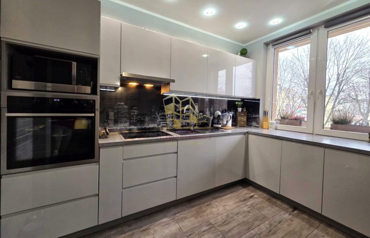 - zabudowa kuchenna wraz ze sprzętem AGD: okap, zmywarka, płyta indukcyjna, piekarnik