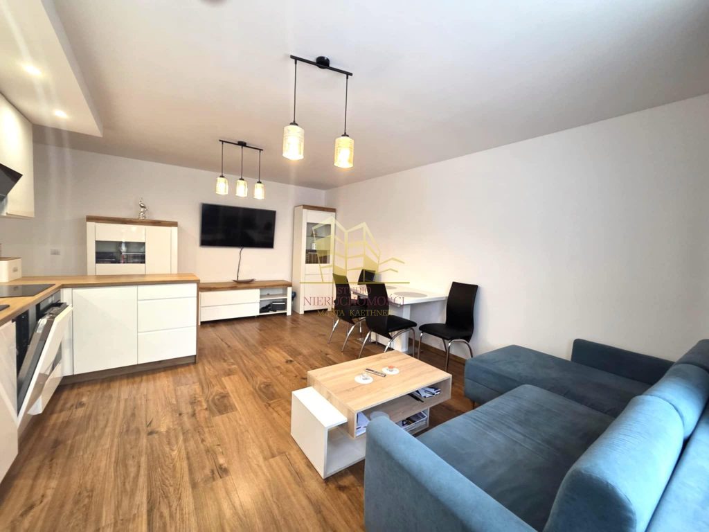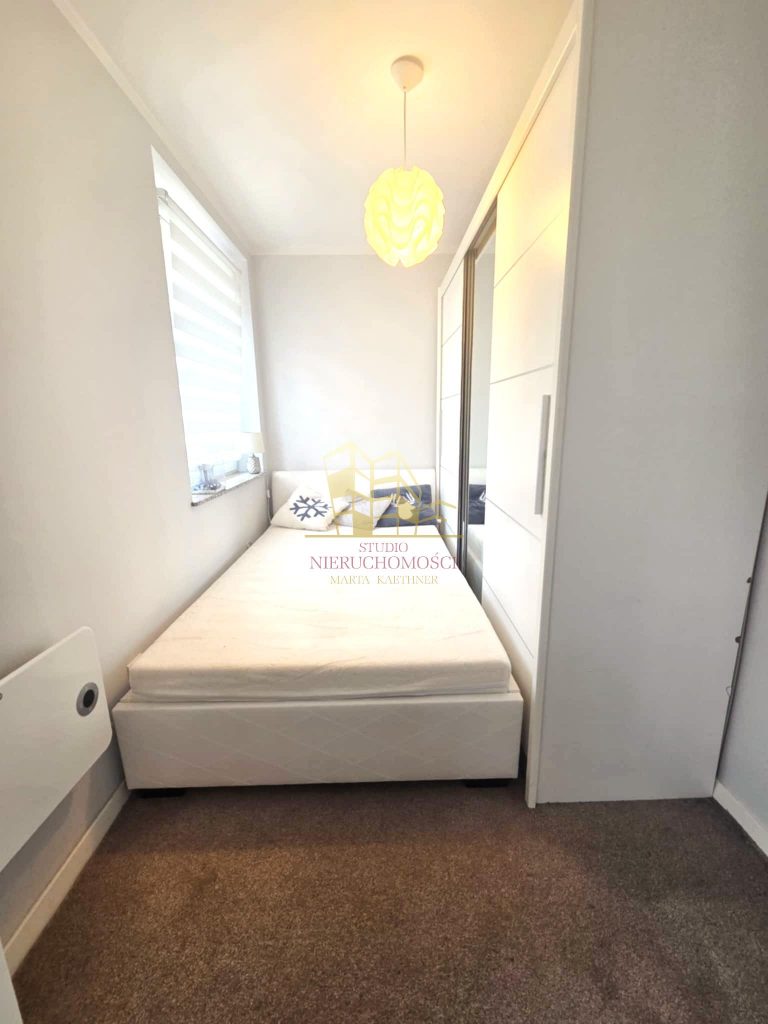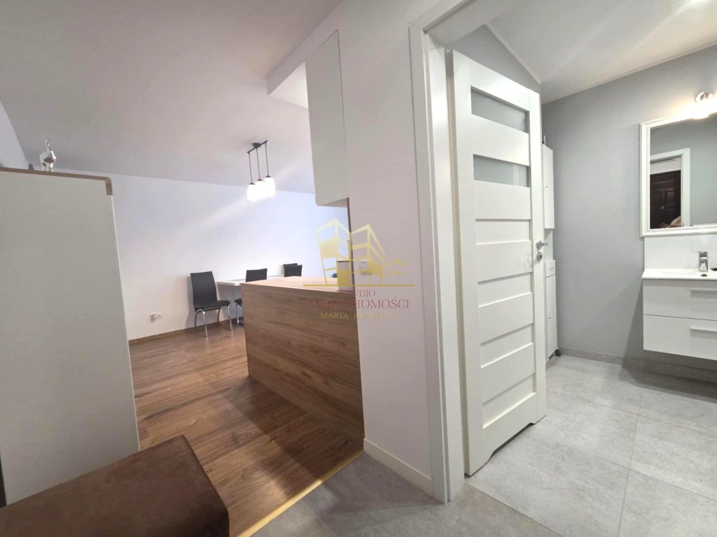 Przestronne, starannie zaprojektowane wnętrze składa się z salonu z aneksem kuchennym, przytulnej sypialni, funkcjonalnego przedpokoju oraz eleganckiej łazienki z WC.